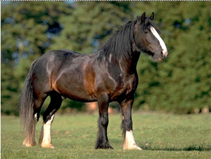 1st = Clydesdale: This horse comes from Scotland. It is known for its action and versatility and is bred for carrying heavy loads. They can be used in competive draft horse showing for harness driving.